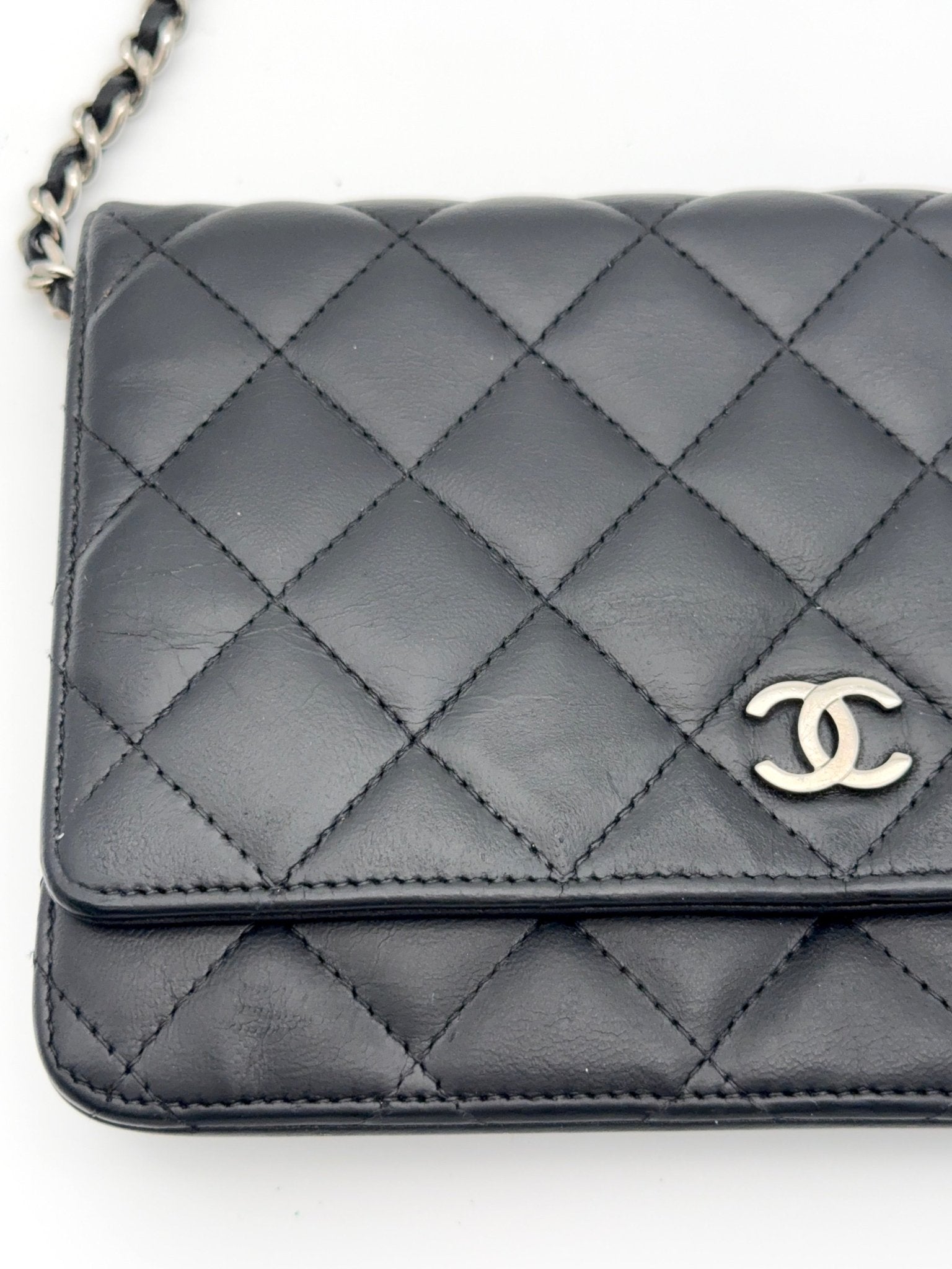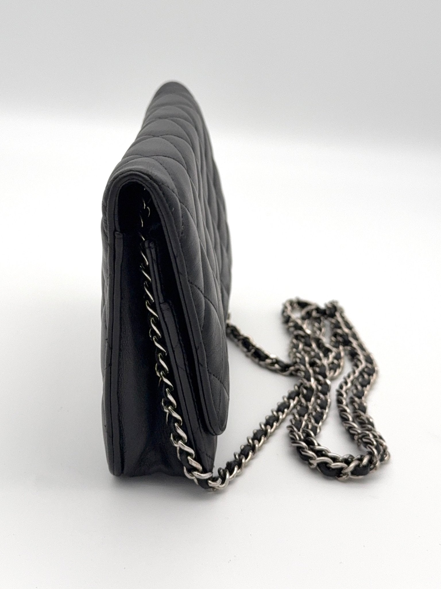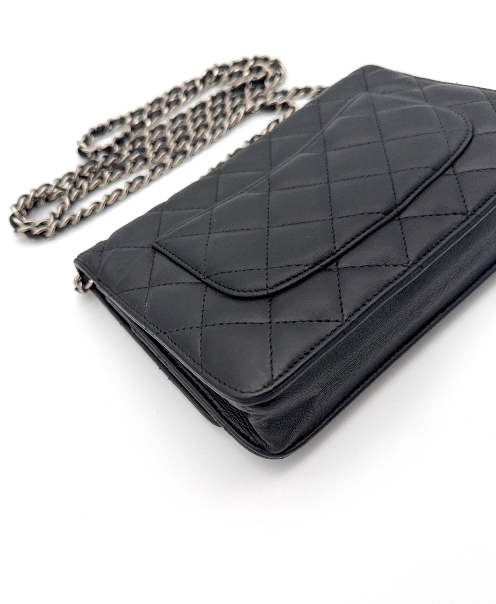 Die Chanel Wallet on Chain (WOC) aus schwarzem Lammleder mit silberner Hardware ist ein zeitloser Klassiker und eines der begehrtesten Modelle von Chanel. Sie vereint die Funktion einer Geldbörse mit dem edlen Look einer Designer Tasche und kann sowohl Crossbody als auch als Schultertasche getragen werden. Eine perfekte Kombination aus Eleganz, Komfort und Funktionalität.