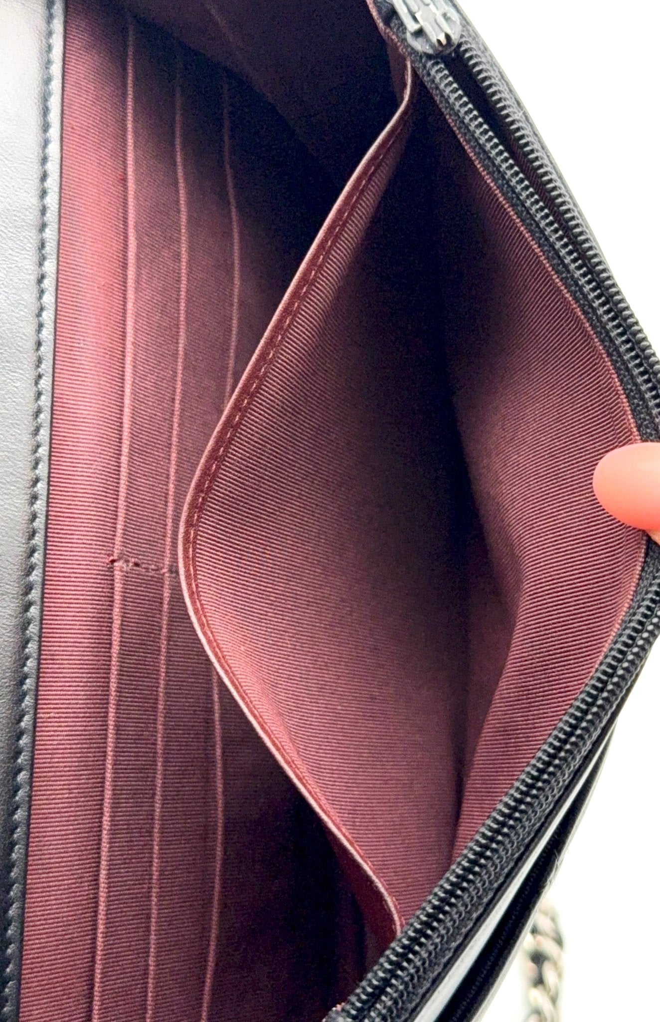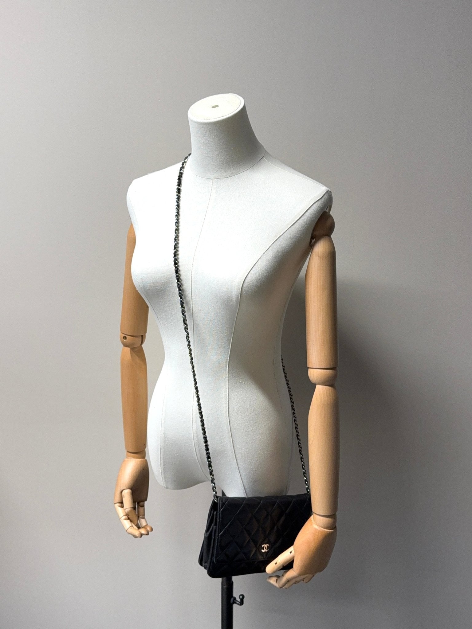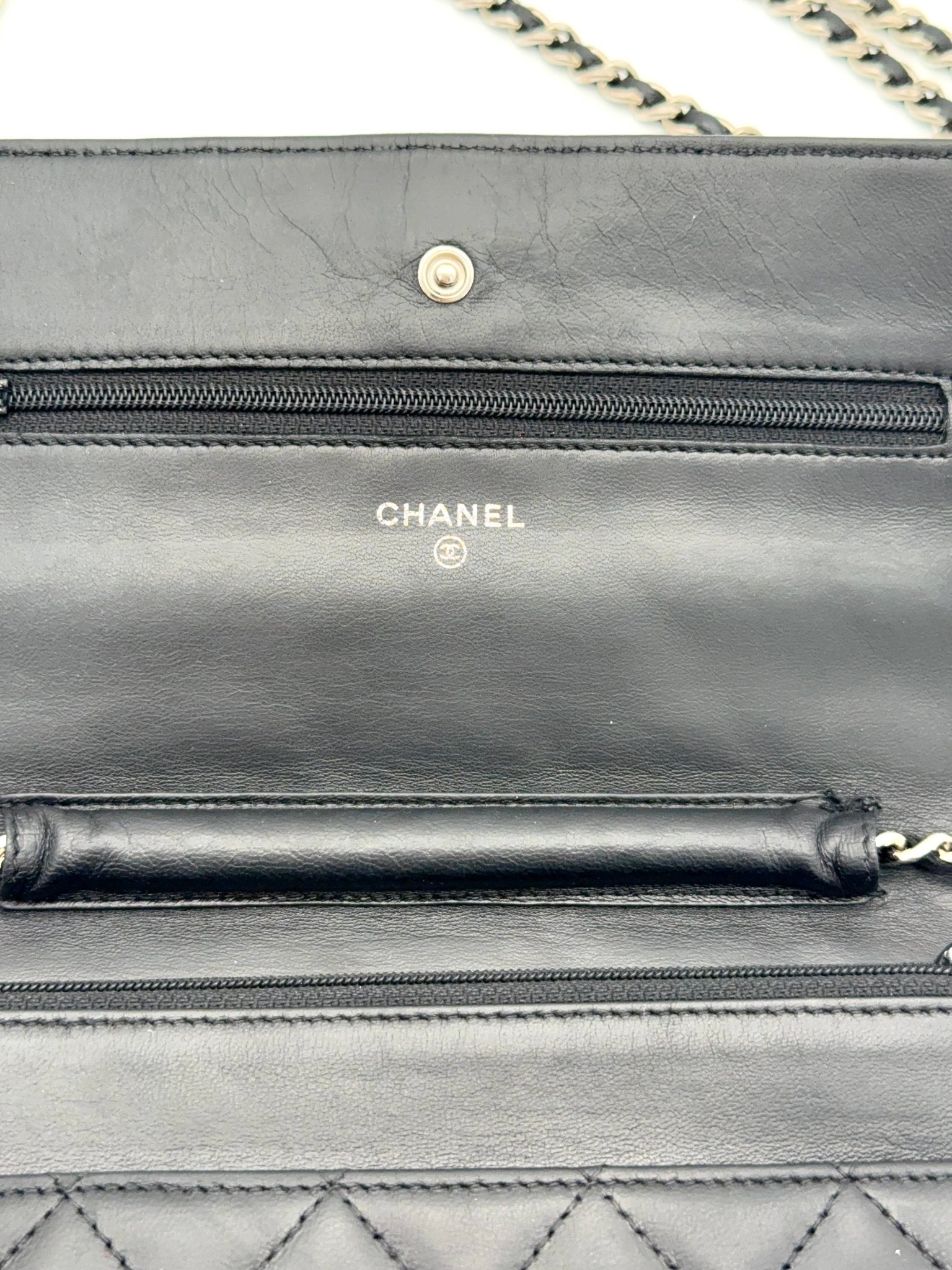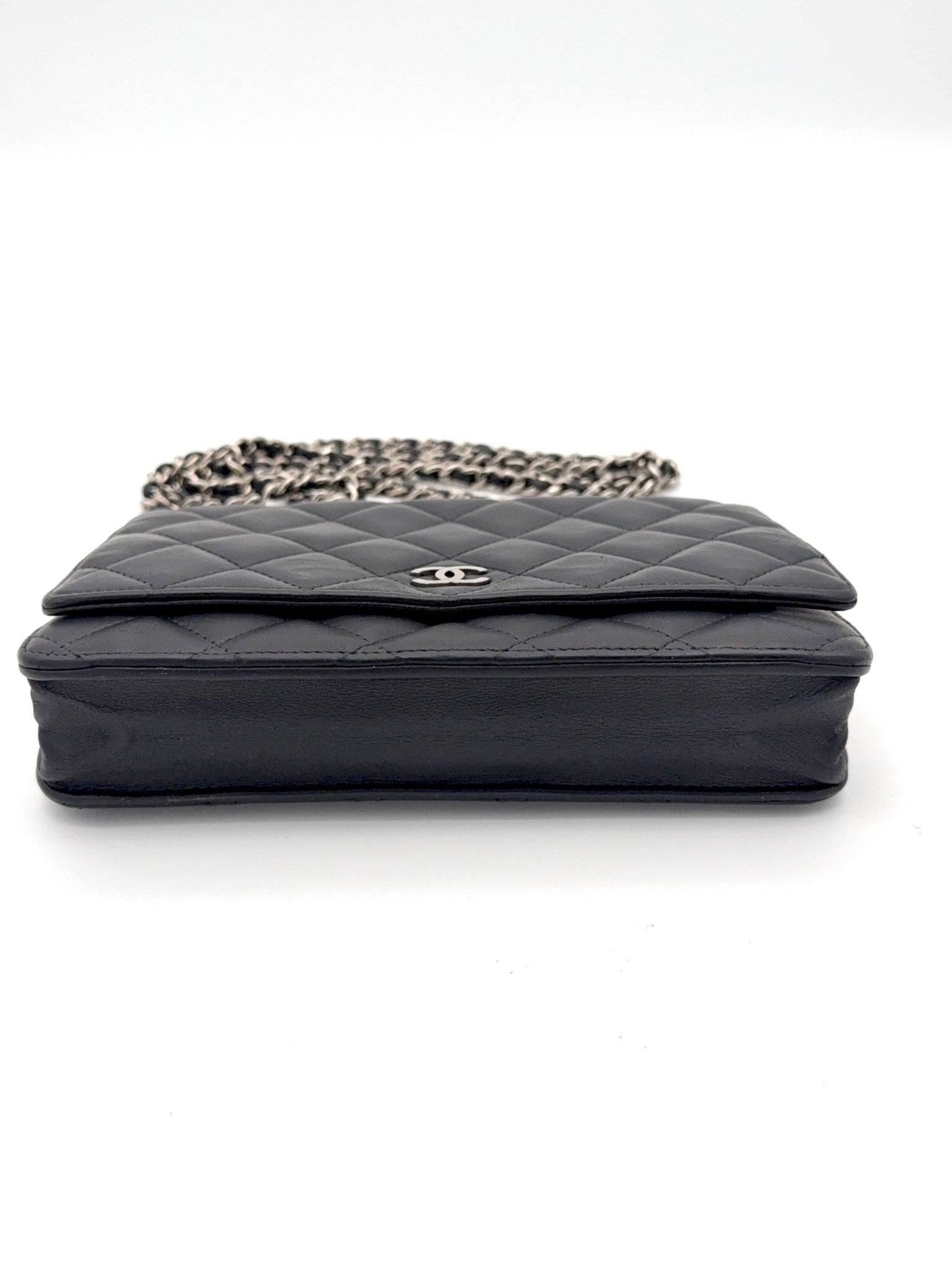 Die Chanel Wallet on Chain (WOC) aus schwarzem Lammleder mit silberner Hardware ist ein zeitloser Klassiker und eines der begehrtesten Modelle von Chanel. Sie vereint die Funktion einer Geldbörse mit dem edlen Look einer Designer Tasche und kann sowohl Crossbody als auch als Schultertasche getragen werden. Eine perfekte Kombination aus Eleganz, Komfort und Funktionalität.