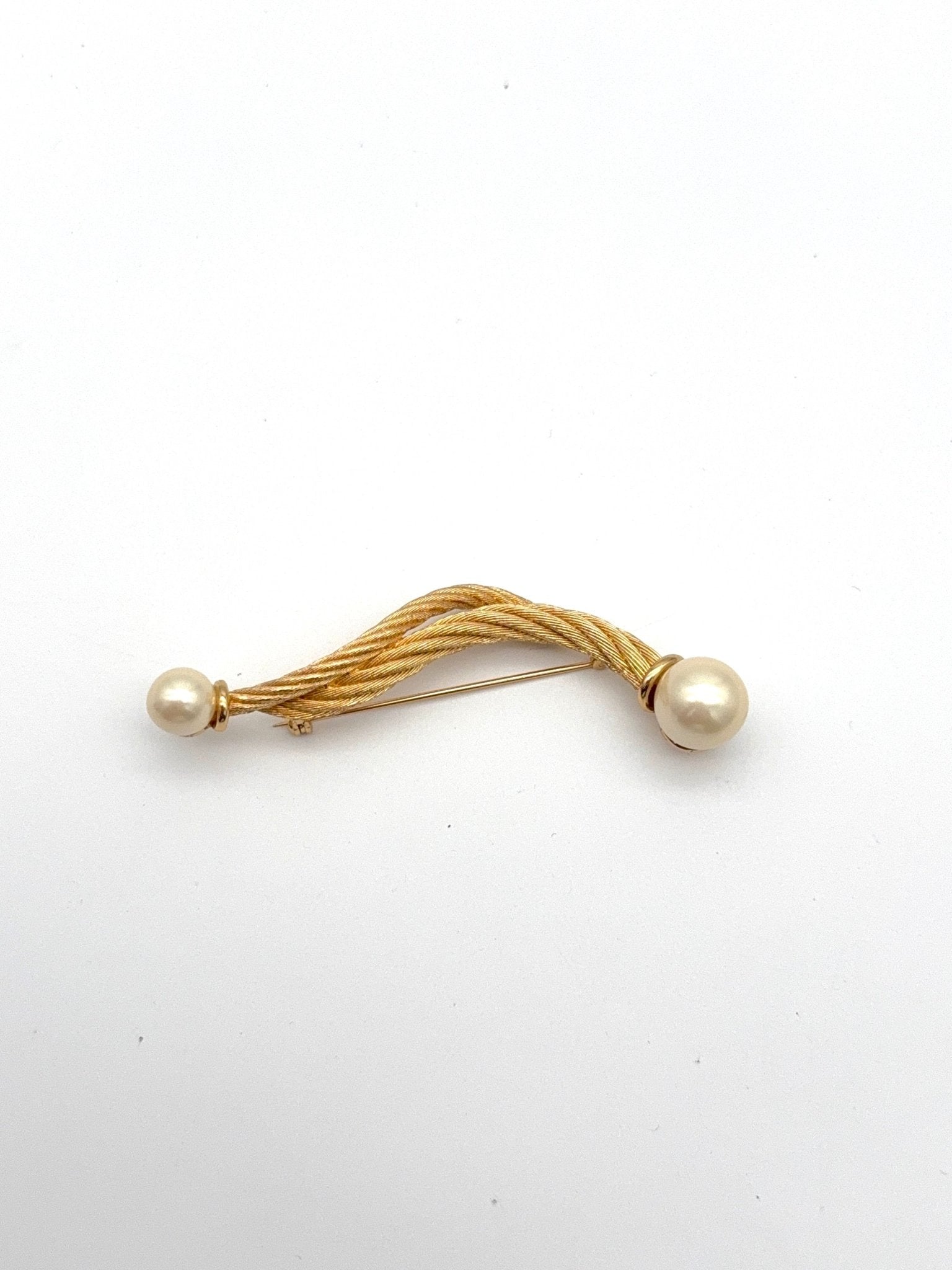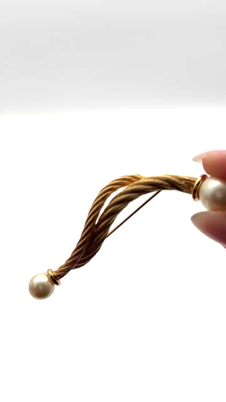 Diese Christian Dior Brosche ist ein stilvolles Vintage-Schmuckstück, das zeitlose Eleganz und hochwertige Verarbeitung vereint. Das goldfarbene Design mit dekorativen Perlenelementen verleiht der Brosche einen klassischen, luxuriösen Look und macht sie zu einem besonderen Highlight für Blazer, Mäntel, Kleider oder Schals.