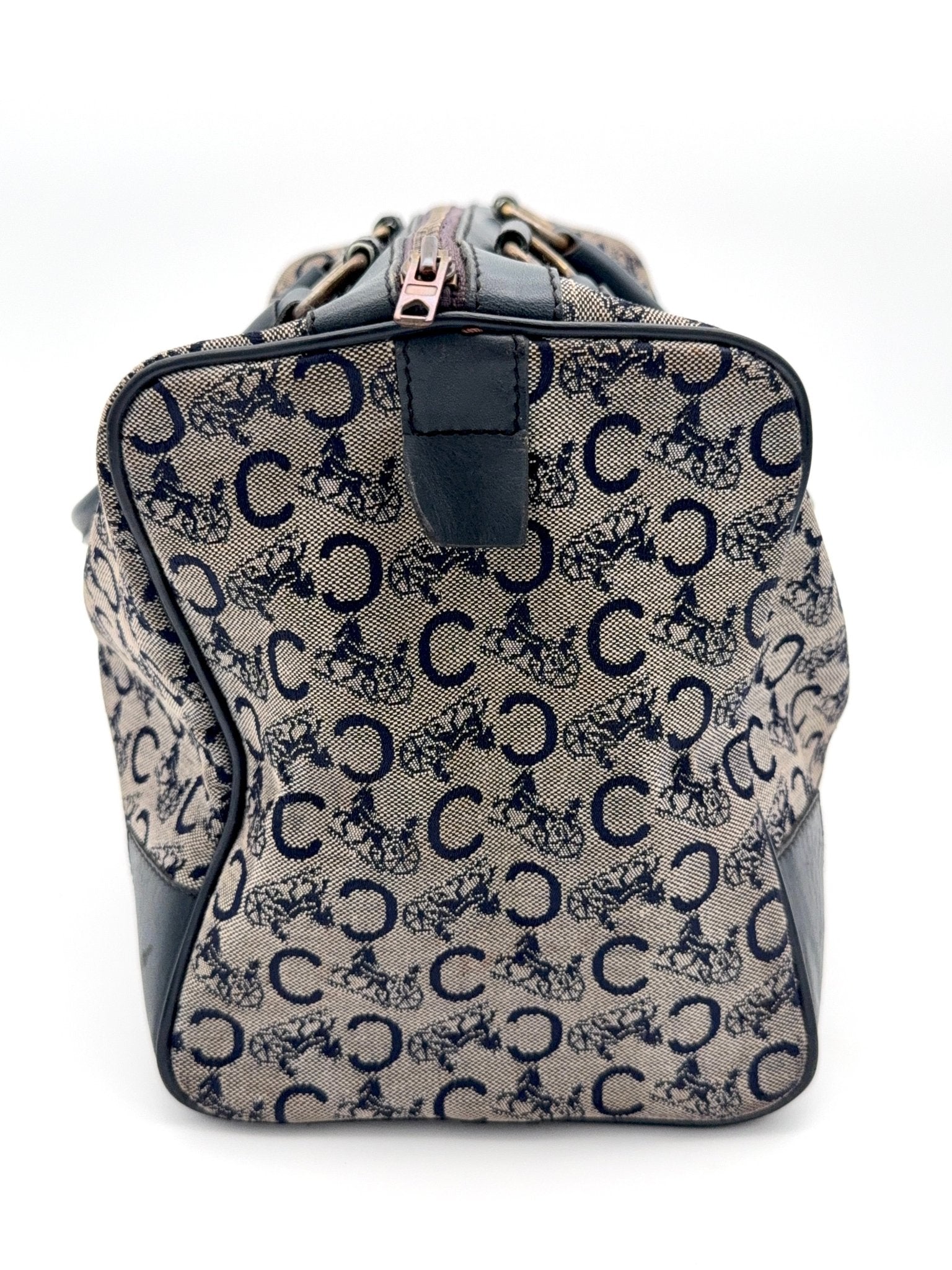 Die Céline Vintage Boston Bag aus ikonischem C Macadam Canvas in elegantem Navy Blue ist ein zeitloser Klassiker der Marke. Das charakteristische Macadam Muster verleiht der Tasche ihren unverwechselbaren Vintage Charme, während die klassische Boston-Form sie zu einem stilvollen und zugleich praktischen Begleiter für den Alltag macht.