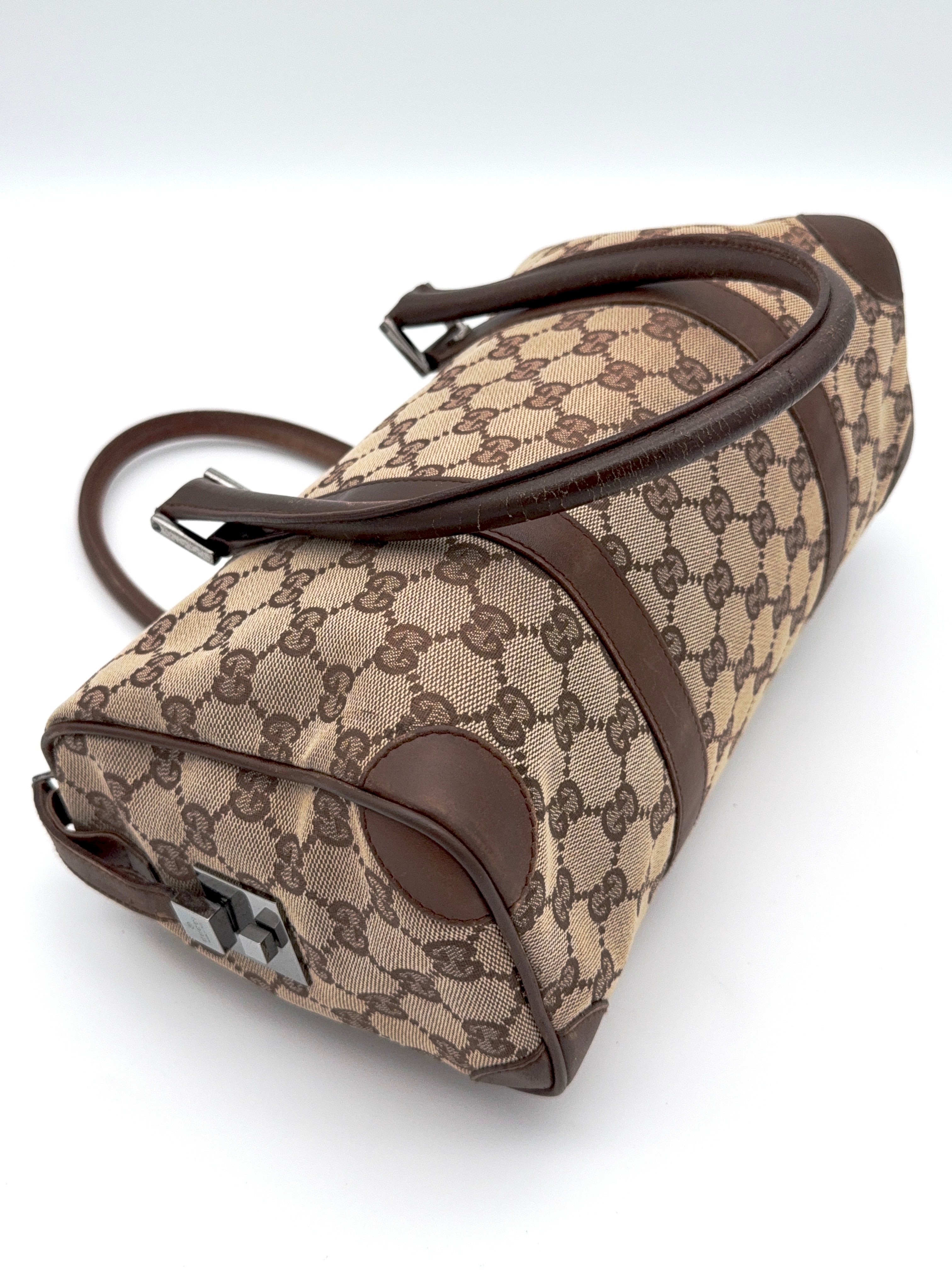 Die Gucci Boston Bag ist ein zeitloser Klassiker und überzeugt durch ihr elegantes Design, das ikonische GG Canvas sowie ihre praktische, kompakte Form. Sie eignet sich ideal für den Alltag, Shopping oder als stilvolle Begleiterin auf Reisen.