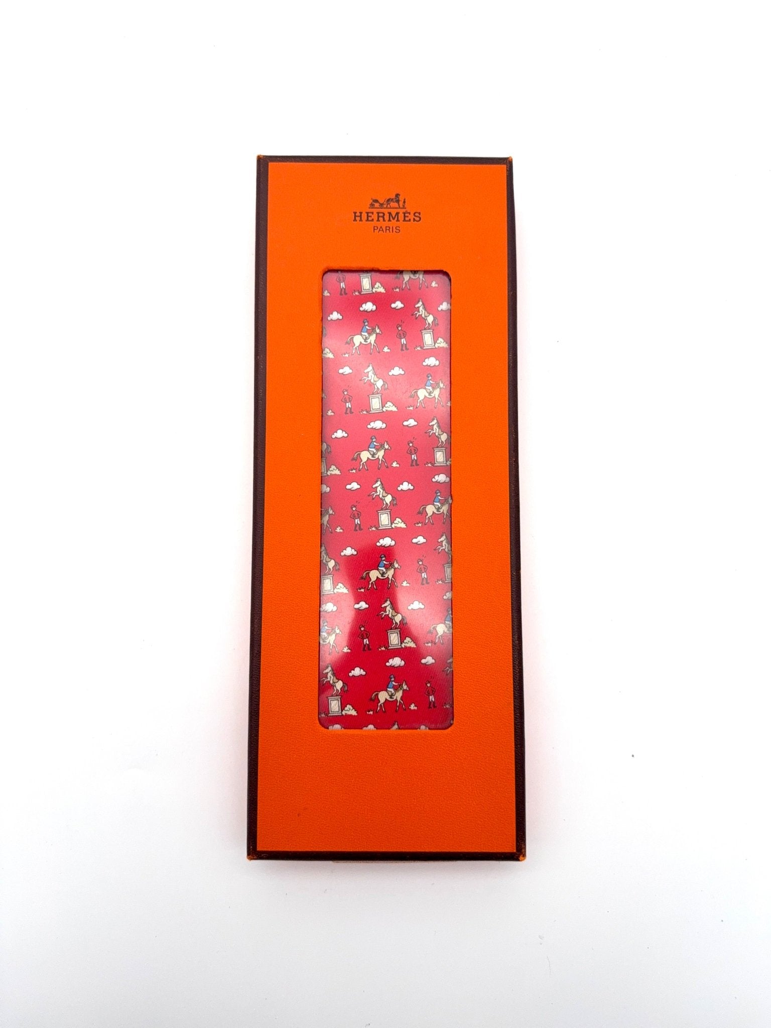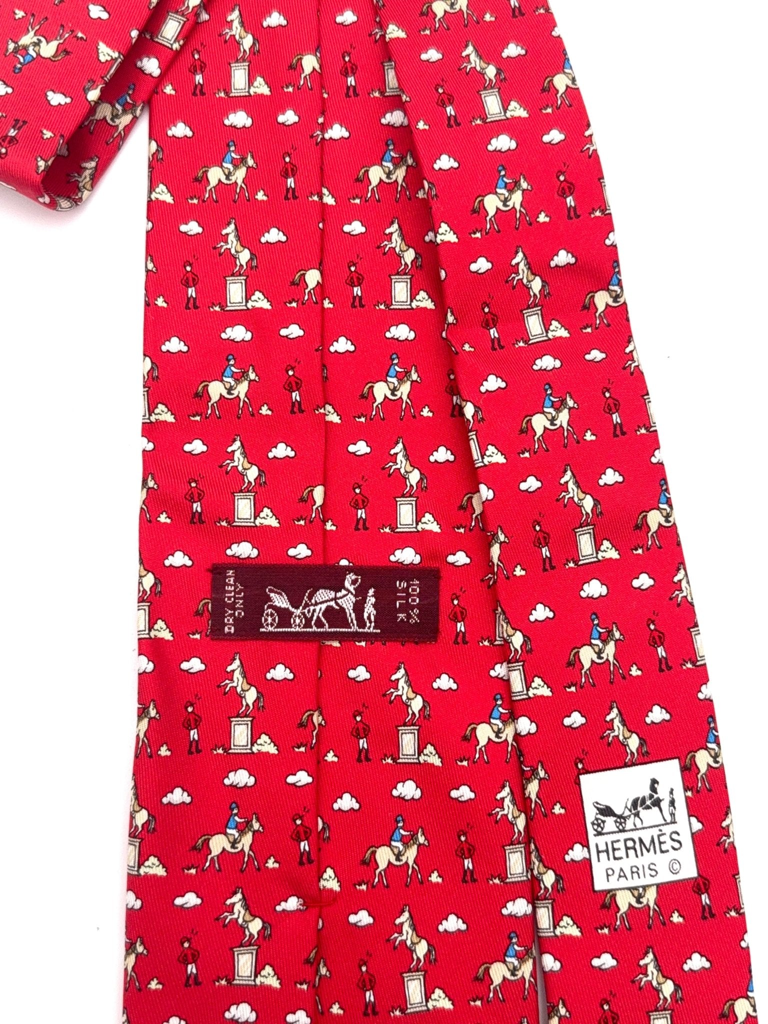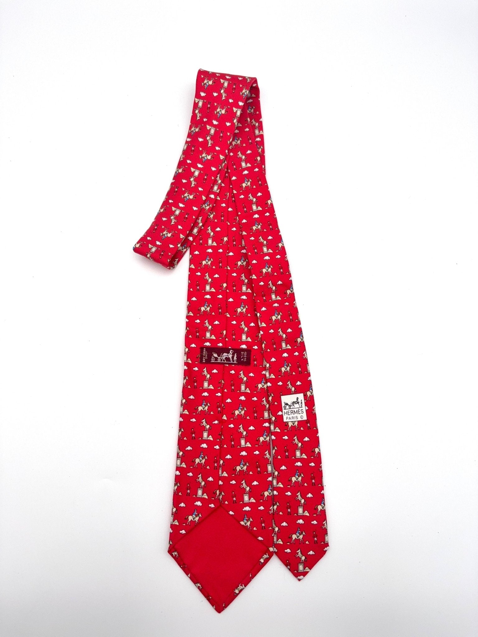 Diese hochwertige Krawatte von Hermès, gefertigt aus 100 % reiner Seide, überzeugt sie durch ihre feine Haptik, den edlen Glanz und das charakteristische Hermès Design mit liebevoll gestalteten Motiven. Die kräftige rote Farbgebung verleiht jedem Outfit einen stilvollen und zugleich besonderen Akzent.