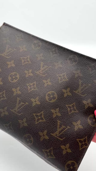 Die Louis Vuitton Toiletry Pouch 26 ist eine der beliebtesten Kosmetiktaschen der Marke und ideal für Reisen oder zur stilvollen Aufbewahrung von Beauty-Essentials. Durch ihre flache Form passt sie perfekt in größere Handtaschen, Trolleys oder Weekender.