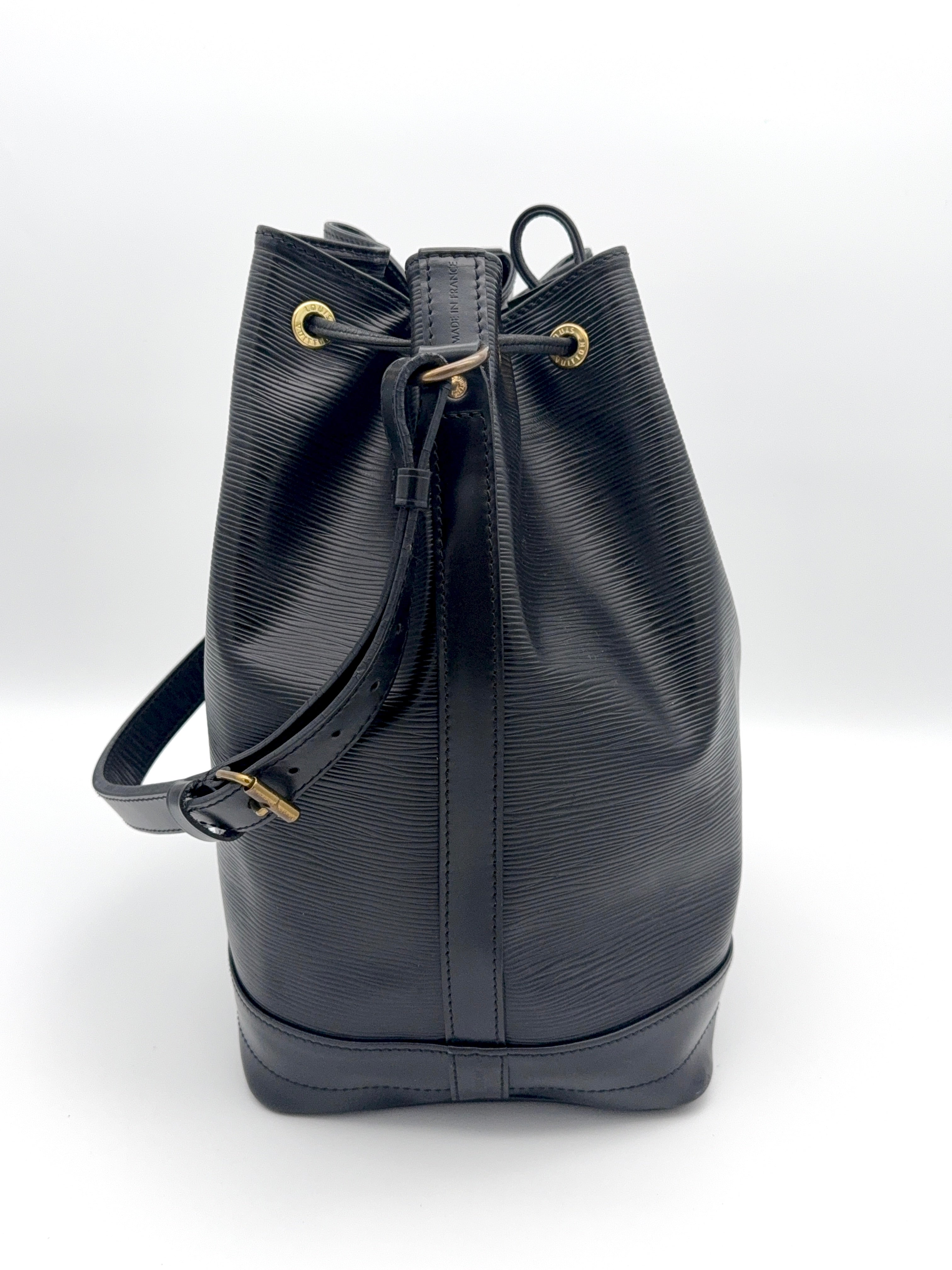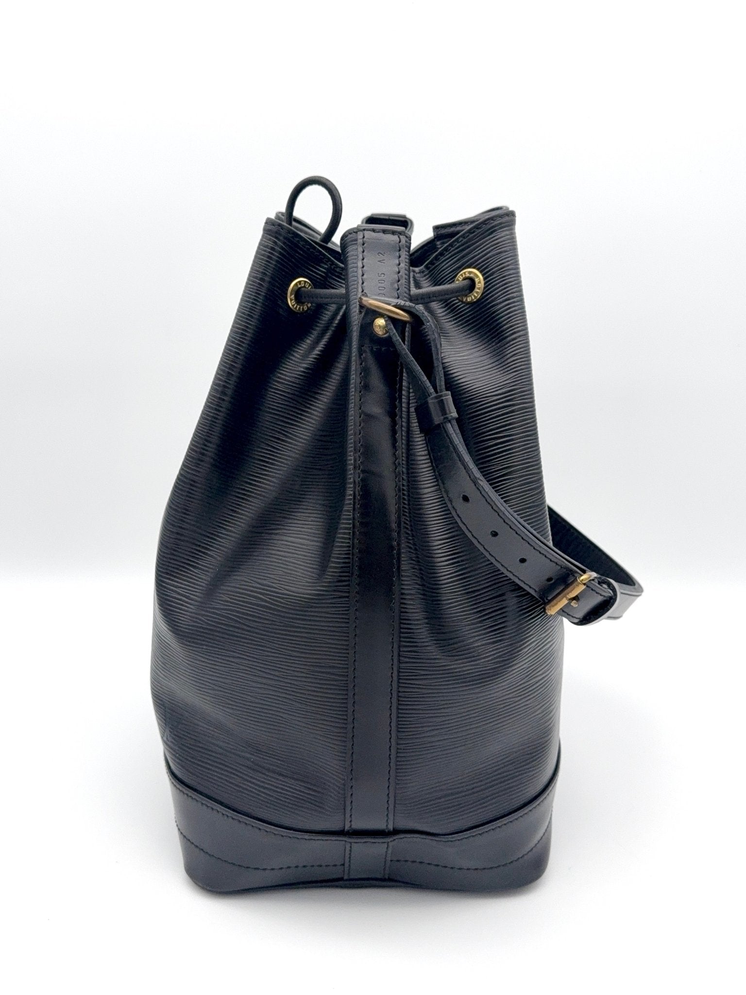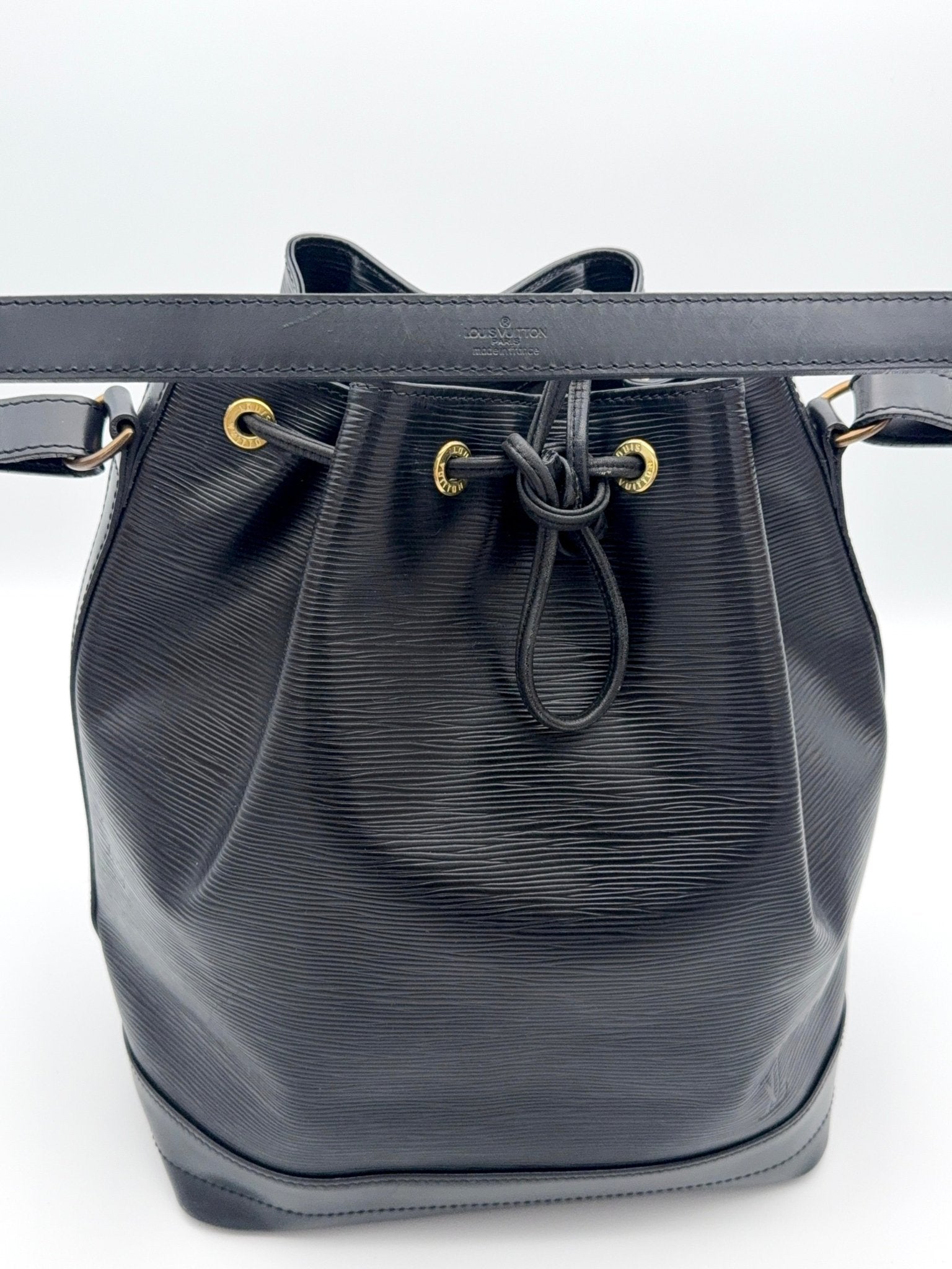 Die Louis Vuitton Sac Noé Grande in schwarzem Epi-Leder ist ein zeitloser Klassiker mit strukturierter Oberfläche, der für Eleganz und Langlebigkeit steht. Das robuste Epi-Leder behält seine Form und verleiht der Tasche einen edlen, modernen Look – perfekt für Alltag und Business.
