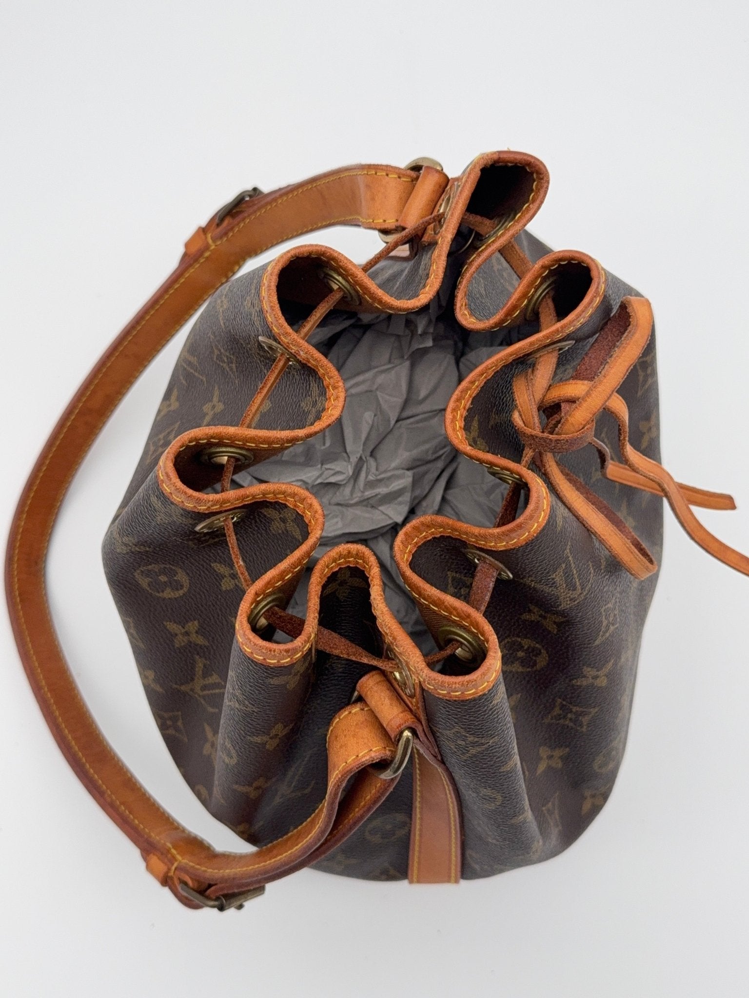 Die Louis Vuitton Sac Noé Petit ist ein ikonisches Modell der Marke und vereint zeitloses Design mit hochwertigem Monogram Canvas. Die kompakte Größe macht sie zu einem idealen Alltagsbegleiter, während der Vintage-Charme der Patina jede Tasche einzigartig macht.
