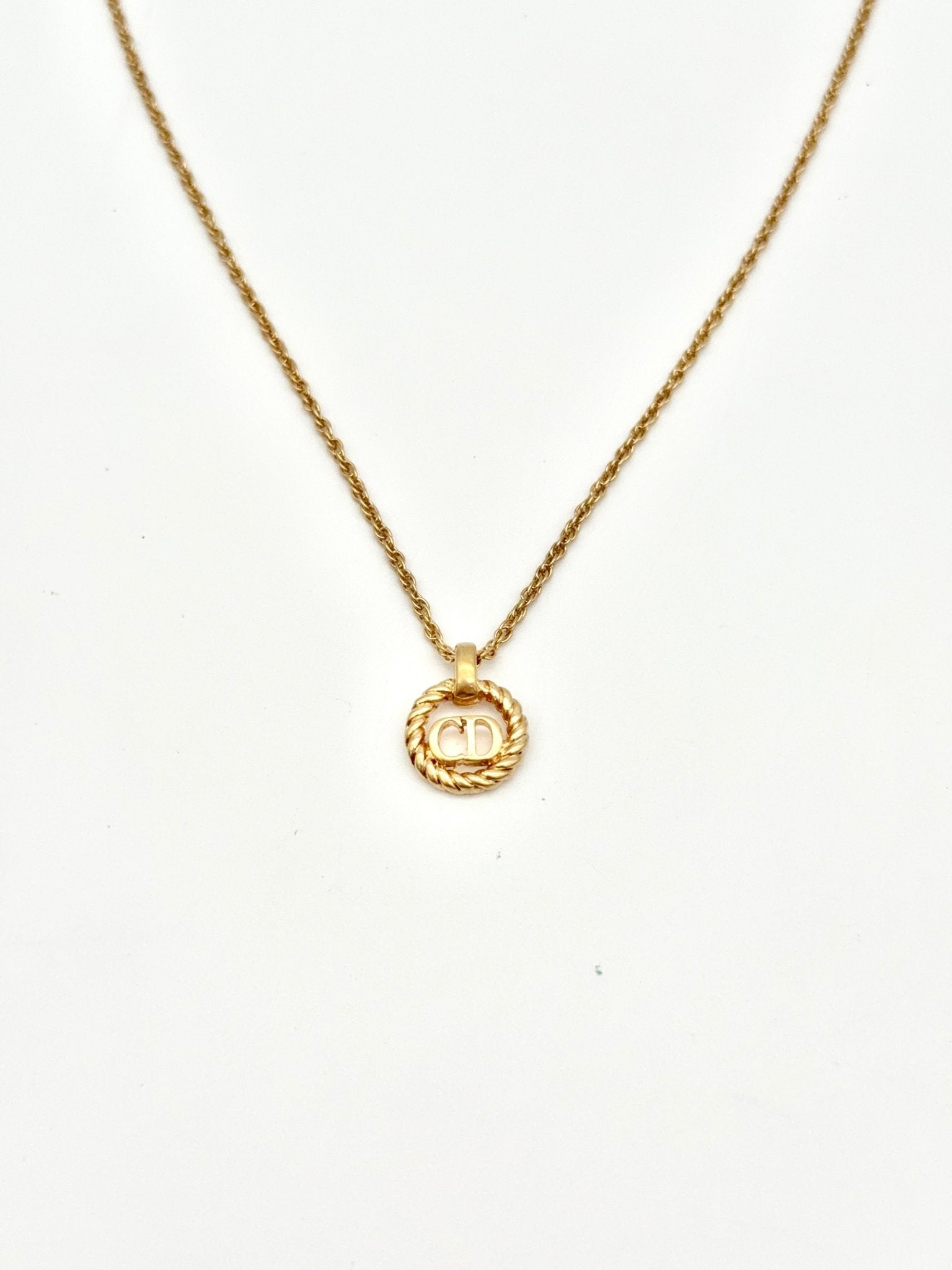 Diese Christian Dior Vintage Halskette ist ein klassisches und elegantes Schmuckstück. Gefertigt aus hochwertigem vergoldetem Metall, besticht sie durch das ikonische CD-Logo, das für zeitlose Eleganz steht.